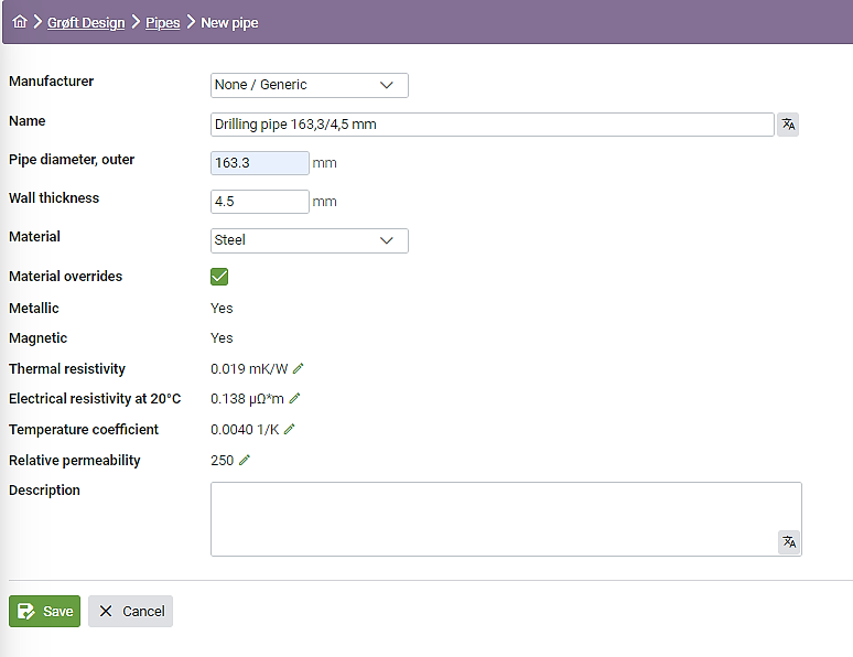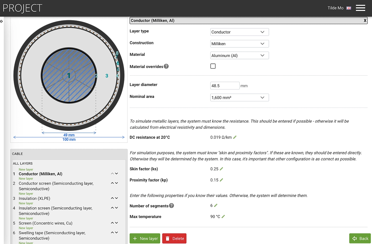 Merk: Simuleringer i Grøft Design® utføres ved hjelp av Finite Element Analysis. For Milliken-kabler er dette svært tidkrevende, så en forenklet modell basert på IEC-formler brukes.