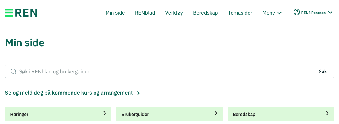 Etter hvert som mer av RENs faginnhold har blitt tilgjengelig digitalt, har behovet for god søkefunksjonalitet økt. Vi har nå lansert et nytt, samlet søk som dekker RENblad, Brukerguider og Planbok, sammen med en oppfrisket RENblad-katalog som gjør det lettere å orientere seg i dokumentsamlingen.