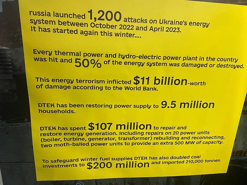 Bildet under gir en liten innsikt i ødeleggelsene i Ukraina. Bildet er tatt på stand til DTEK.