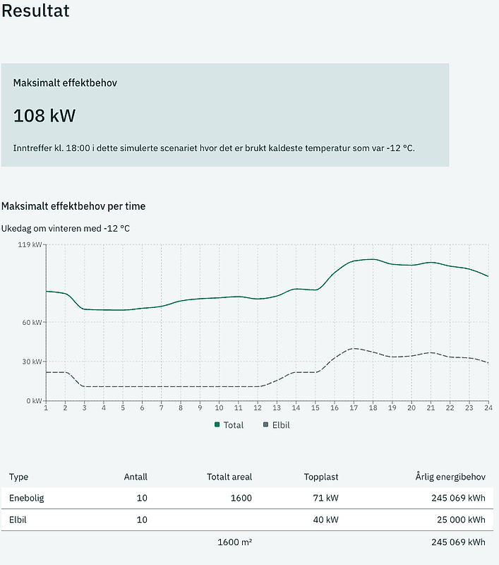 Det faktiske målte effektbehovet vil variere, men presisjonen øker når antall kunder øker. Metodikken er konservativt utformet – det forventes at verktøyet heller overestimerer enn underestimerer effektbehov.